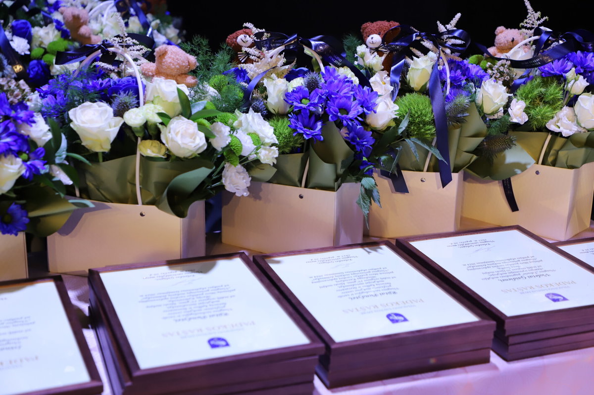 Visagino savivaldybės meras Erlandas Galaguz ir savivaldybės vicemerė Aleksandra Grigienė geriausiems 10-iai mokinių, 2024 m. pasiekusiems svariausių laimėjimų mokslo, sporto, kūrybos srityse, įteikė vardines atminimo dovanėles, juos rengusiems 24-iems mokytojams – padėkos raštus.